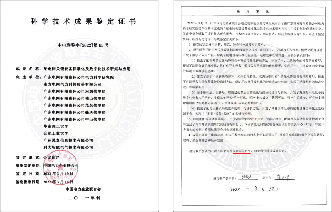 配網(wǎng)遠(yuǎn)程測試核心技術(shù)!廣州思泰信息技術(shù)有限公司參與的“配電網(wǎng)關(guān)鍵設(shè)備標(biāo)準(zhǔn)化及數(shù)字化技術(shù)研究與應(yīng)用”項(xiàng)目成果于2022年3月10日通過中電聯(lián)組織的科學(xué)技術(shù)成果鑒定。